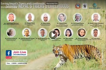 This March 12, 2024 Facebook live event featured speakers from the government of Nepal, Nepali communities, and development partners such as the World Bank and WWF in supporting the conservation of tigers and in fostering sustainable development, economic growth, resilience, and livelihoods in Nepal.